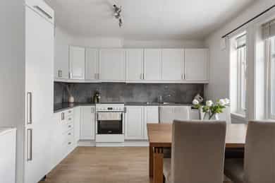 Kjøleskap med fryser, stekeovn og oppvaskmaskin følger boligen.