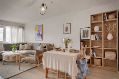 Det opplyses om at det på ekstraordinær generalforsamling den 18.06.2024 ble vedtatt å gjennomføre pakke 1 ifm. rehabiliteringsprosjektet i borettslaget. Rehabiliteringen innebærer følgende arbeid: - Tak: etterisolering, ny taktekking og utbedring. - Fasader: etterisolering, vindtetting og ny fasade. - Nye vinduer, balkongdører og hovedinngangsdør. - Eksisterende balkonger: tetthet, drenering og rekkverk. - Balansert ventilasjon med varmegjenvinning. - Fuktsikring av garasjetak i blokk D og bakside av blokk E. - Etterisolering av gulv mot garasje. - Utskifting av garasjefronter. - Installasjon av varmepumpe med støtte fra Enova. Varmepumpene er en felles installasjon for borettslaget, ikke en varmepumpe til hver leilighet. Varmepumpene vil benyttes til oppvarming av varmtvann og oppvarming av hver enkelt leilighet via viftekonvektor som installeres i boenhetene. Rehabiliteringsprosjektet er startet, og felleskostnadene og fellesgjelden vil øke gradvis som følge av arbeidet. Lånet delutbetales etter hvert som rehabiliteringen skrider frem. Iht. utarbeidet oversikt over økning i felleskostnader og fellesgjeld, er det estimert at felleskostnadene vil øke til kr 7 980,- pr mnd., og andel fellesgjeld vil øke til kr 893 014,- når arbeidet er ferdigstilt og lånet utbetalt i sin helhet. Det gjøres spesielt oppmerksom på at dette er et estimat, og at endringer kan forekomme. Byggelånet har en løpetid på to år og er avdragsfritt i perioden. Ved fullført rehabilitering blir lånet konvertert til et ordinært lån med løpetid på 40 år. Borettslagsmodellen innebærer at borettslaget eier eiendommen, mens andelseierne eier andeler i borettslaget, som gir borett til en bestemt bolig. Andelseierne har ikke personlig ansvar for borettslagets fellesgjeld, men andelseierne må dekke borettslagets løpende utgifter. Manglende innbetaling av fellesutgiftene som følge av andre andelshaveres mislighold, eller der borettslaget sitter på fraflyttede og/eller usolgte andeler, må dekkes av de øvrige andelseierne. Borettslaget har legalpanterett i andelen for krav på dekning av felleskostnader og andre krav fra borettslaget på inntil 2 ganger folketrygdens grunnbeløp. Kjøper og selger er forpliktet til å undertegne standard kjøpekontrakt utarbeidet av Nordvik i forbindelse med eiendomstransaksjonen. Kjøpekontrakt kan besiktiges hos eiendomsmegler før bud inngis. Kontakt eiendomsmegler for spørsmål. Selger leverer eiendommen i ryddig og rengjort stand.