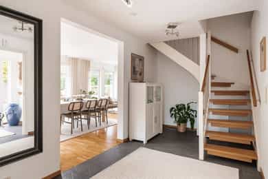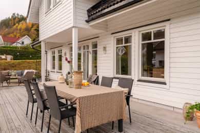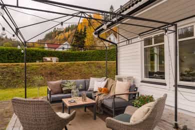 Tiltalende og innholdsrik enebolig over 2 plan - 4 sov, 2 bad, flere stuer - Solrik terrasse - Barnevennlig i blindvei