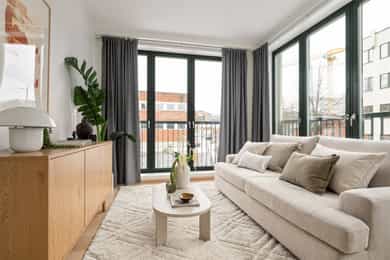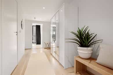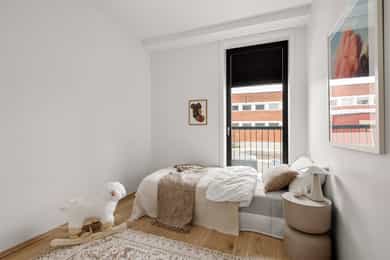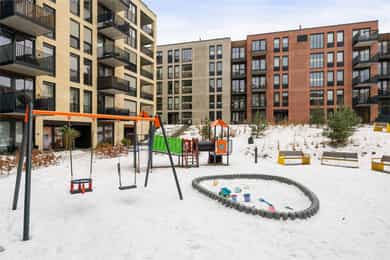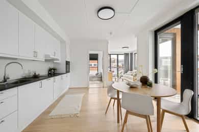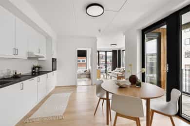 Moderne & lys 3-roms hjørneleilighet (2023) | Sydvendt balkong på 5 m² | Heis | Vannbåren gulvvarme | Felles takterrasse