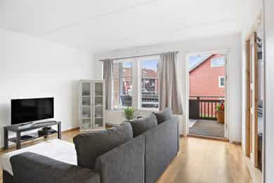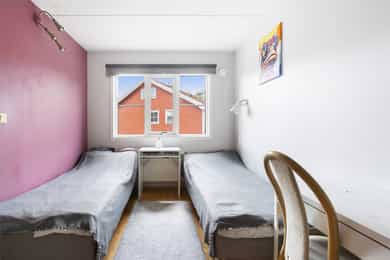 Nordvik eiendomsmegling har igjen gleden av presententere spennende tre-roms Boligen ligger i 2.etg.og inneholder følgende: - entré - gang - kjøkken - bad/WC - soverom I - soverom II - stue - innebod - veranda på ca 9 kvm. I tillegg disponerer boligen: - garasjeplass med lader i fellesanlegg - en bod i kjeller Høydepunkter med boligen og området: - praktisk planøsning - gjennomgående - ingen TG 3 - "rør-i-rør" system - foretatt tester med fuktsøker på våtrommet, uten unormale utslag de steder søkene ble utført - noe oppgraderingsbehov - utleiemulighet - hyggelig nabolag - kort vei til bl.a.: Barnehager, skoler, butikker, idrettsanlegg, grøntområder m.m. - populær beliggenhet Velkommen til Åslandhellinga 417