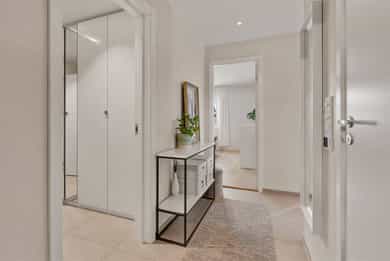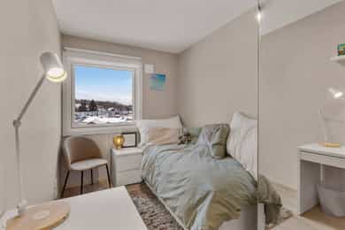 Fra stuen er det utgang til en balkong med lite innsyn og god plass til utemøbler. I tillegg disponerer leiligheten en garasjeplass med el-lading. En lettstelt og innbydende leilighet i et stille og barnevennlig område. Her har du kort vei til skole, barnehager, skogen, matbutikker, storsenter og kollektivtransport knutepunkt.