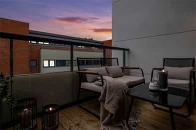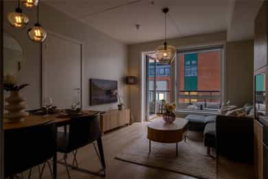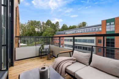 En gjennomført og moderne leilighet - nyoppført i 2025 - i 5 etasje med god planløsning. Attraktivt beliggenhet med kort vei til alt Oslo har å by på. Fremstående kvaliteter: - Ferdigstilt 2025 - Delikat HTH- kjøkken - Nytt bad 2025 med opplegg for vaskemaskin - Balkong med gode solforhold - Utvendige/fjernkontrollerte screens på soverom, verandadør og stuevindu for optimal solavskjerming - Solrik fellestakterrasse - Vannbåren gulvvarme på bad - Balansert ventilasjon - Raus takhøyde på 2,6m - Heis - 5. Etasje - Åpen stue/ kjøkken løsning - Lave felleskostnader - Varmtvann i felleskostnader - Lave kjøpsomkostninger Kort vei til: - Buss, trikk og tog - Dagligvare - Skoler/barnehage