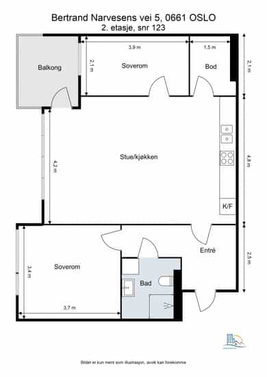 BRA-i: 73 kvm. Entré, bad, bod, 2 soverom, og stue/kjøkken