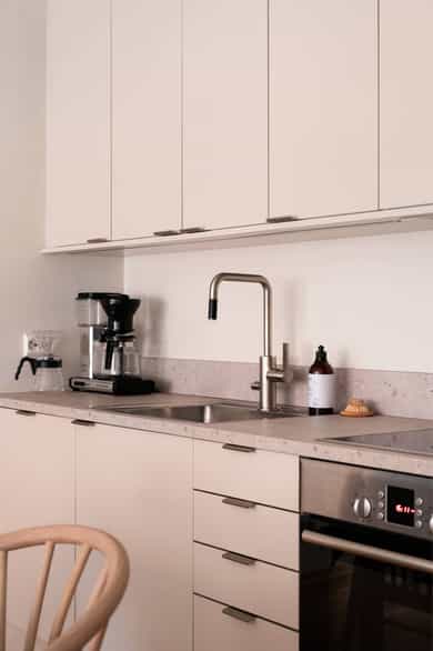 Stue: Stuen oppleves som svært romslig og innbydende, med god plass til både sofagruppe med tilhørende møblement og spisebord som egner seg godt for middagsselskaper. Store vindusflater sørger for rikelig med naturlig lys. Fra stuen er det utgang til en koselig balkong som fungerer som en naturlig forlengelse av oppholdsrommet i sommerhalvåret. Stuen er malt i lyse og moderne fargetoner, og har en åpen løsning mot kjøkkenet som gir en luftig og sosial atmosfære. Balkong: Fra stuen er det utgang til en overbygget og trivelig balkong på ca. 6 kvm, vendt mot et rolig indre gårdsrom. Balkongen har god plass til utemøblement og beplantning. Her er det både stikkontakt på vegg, belysning og varmelampe, noe som forlenger balkongsesongen betydelig. Kjøkken: Lys og pen kjøkkeninnredning med glatte fronter, samt rikelig med både skap- og benkeplass. Kjøkkenet er utstyrt med integrerte hvitevarer bestående av koketopp, stekeovn, oppvaskmaskin og kjøl-/fryseskap. Ventilator er plassert over kokeplass. Kjøkkenet ble betydelig oppgradert i 2025 med nye fronter fra Sigdal, integrert kombiskap fra Siemens på 75 cm, samt ny benkeplate i laminat, og ny stor vaskkum og kran. Bad: Pent og flislagt baderom innredet med vegghengt toalett, laminat benkeplate med nedfelt servant og underskap, samt dusjhjørne med svingbare glassdører. Badet har fliser på gulv med behagelig gulvvarme, fliser på vegger og malt himling med downlights. Mekanisk avtrekk og opplegg for vaskemaskin og tørketrommel. Soverom: Leiligheten har to soverom. Hovedsoverommet er romslig og har god plass til dobbeltseng, nattbord, kommode samt medfølgende garderobeskap. Rommet er malt i en lun og behagelig fargetone. Soverom nummer to egner seg utmerket som gjesterom, barnerom, kontor eller garderobe, avhengig av behov. Her er det plass til seng, nattbord, kontorpult eller garderobeskap. Begge rommene vender mot indre gårdsrom. Entré: Romslig og praktisk inngangsparti med god plass til oppheng av yttertøy, sam mulighet for skoskap. En stor skyvedørsgarderobe gir rikelig med oppbevaringsplass for private eiendeler. Dørcalling er praktisk plassert ved inngangsdøren. Tilstandsrapport for boligen er vedlagt salgsoppgaven. Se denne for nærmere informasjon om tilstandsgrad.