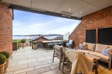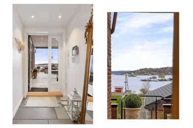 Velkommen til populære Halden Brygge! Drømmer du om å våkne til glitrende sjøutsikt og muligheten for å ta et spontant morgen- eller kveldsbad? Denne unike endeleiligheten over flere plan gir deg akkurat det – og mer til. Her bor du skjermet til innerst i en blindvei, bare et steinkast fra vannet, og med en utsikt som bare må oppleves! Fremstående kvaliteter: - Endeleilighet uten sjenerende innsyn - Vakker fjordutsikt og gode solforhold - Enkel adkomst - sluse fra garasje - Fleksibel planløsning - Store vindusflater som drar naturen rett inn - Delvis overbygd terrasse m/skifer og varmekabler - Garasje + biloppstillingsplass - 4 sov - 2 bad + vaskerom + WC - 2 peiser - Tøffelavstand til kyststi & fjorden m/bademuligheter