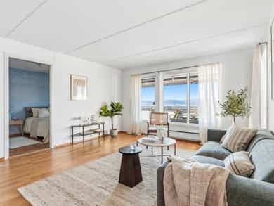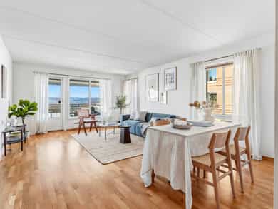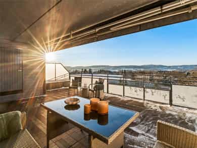 Lys, romslig 3-roms hjørneleilighet m/flott intern beliggenhet! Vestvendt terrasse på 31m² - Fantastisk utsikt - Garasje
