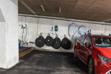 Boligen disponerer en garasjeplass i felles garasjeanlegg som er tinglyst som en tilleggsdel. Det er montert elbil lader til plassen. Felleskostnader for garasjeplass, samt strømforbruk kommer i tillegg til felleskostnadene. Det vil påløpe kostnader for eierskifte av parkeringsplasser. Ellers gjesteparkering etter gjeldende bestemmelser.