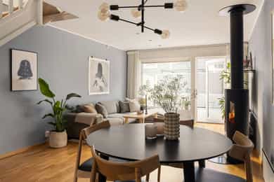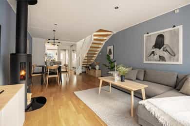 Nordvik Østensjø har gleden av å presentere Skullerudbakken 106 | Et delikat og sjarmerende enderekkehus over to plan med familievennlig planløsning. Her får du en moderne og romslig bolig i naturskjønne omgivelser på Skullerud rett ved Østmarka. Fra boligen er det også nærhet til kollektivtransport og en rekke fasiliteter. Her får kjøper gleden av moderne løsninger, solrike uteplasser, mye oppbevaringsplass, og svært barnevennlig nabolag. Verdt å merke seg: - Syd-vestvendt terrasse fra stue - Lekkert bad - Vedovn i stue - HTH kjøkken m/integrerte hvitevarer - Terrasse v/inngangsparti - 3 gode soverom - Garasjeplass m/EL - Balansert ventilasjon - Utebod - Meget barnevennlig område - Rikelig med lagringsplass - Kort vei til barnehager og skoler - Kun 600m til T-bane og bussforbindelser