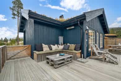 Velholdt og pen hytte fra 2017 | Umiddelbar nærhet til alpin, ski, sykkel og golf | Meget solrikt og stor terrasse