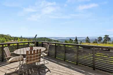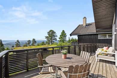 Familievennlig enebolig med stor terrasse, idyllisk hage og fantastisk utsikt. Boligen ligger høyt og solrikt i et skjermet og barnevennlig område, omgitt av natur og grønne omgivelser. Tett på marka med flotte tur- og skimuligheter året rundt. Boligen er velholdt med moderne standard og gjennomførte oppgraderinger.