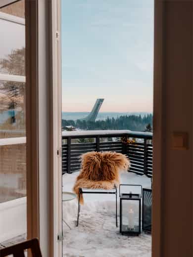 • Stue med peis, god takhøyde og utsikt