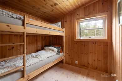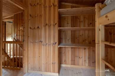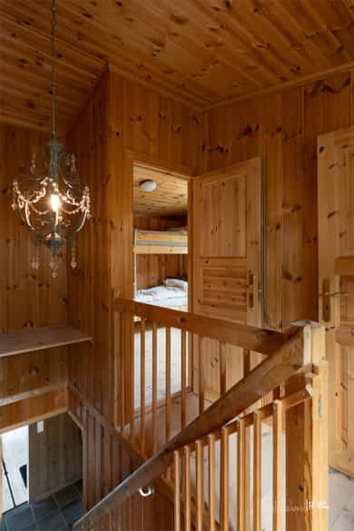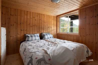 Hytta går over to etasjer og inneholder: Første etasje: Entrè, to soverom, bad, stue/kjøkken Andre etasje: Stue, to soverom og toalettrom