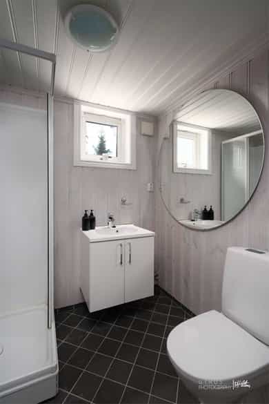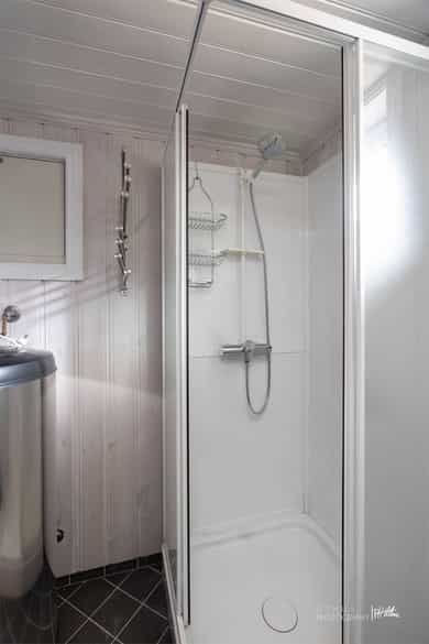 FRITIDSBOLIG Informasjon hentet fra tilstandsrapporten Utvendig: Taktekking: Taktekking består av torv på underliggende membran/tettesjikt. Tekkingble besiktiget fra tak. Torvlaget fremstår generelt jevnt, men membran er synlig enkelte steder, særlig ved kanter/overganger og i tynnslitte partier. Dette vurderes som normalt å kunne oppstå på torvtak over tid, men bør følges opp for å hindre at UV-påvirkning, uttørking og mekanisk slitasje forkorter levetiden på tettesjiktet. Det anbefales å etterfylle torv i områdene hvor membranen er eksponert, og sikre tilstrekkelig og jevn torvtykkelse med korrekt fall mot renner/nedløp. Videre anbefales periodisk ettersyn av vegetasjon, avrenning og detaljer rundt gjennomføringer/oppkanter. Punktet må ses i sammenheng med «Takkonstruksjon/Loft». Nedløp og beslag: Nedløp og beslag består av renner/toppbord i trevirke med delvis kjetting som nedløp. Besiktiget fra terreng og tak. Det registreres værslitasje i treverket med oppsprekket toppbord og enkelte oppstikkende spiker. Det er åpne skjøter/gap i toppbord ved møne, og noen toppbord er kappet for korte og avsluttes før kledning. Det er få nedløp, og det observeres sittende vann i takrenner – indikasjon på mangelfullt fall/tilstopping. Enkelte rennefelt mangler nedløp/kjetting helt, slik at avrenning skjer som overrenning over rennekant. Løsningen med kjettingnedløp krever jevnlig oppfølging for å sikre fri vannføring og bortledning fra grunnmur. Punktet må ses i sammenheng med Taktekking og Takkonstruksjon/Loft. Veggkonstruksjon: Veggkonstruksjon består av trekonstruksjon av ukjent utførelse med utvendig liggende bordkledning. Ved visuell befaring registreres stedvis falmet/slitt beis med eksponert trevirke, sprekket listverk samt lokalt mykere treverk i enkelte utsatte detaljer. Det ble ikke åpnet konstruksjoner. Løsninger i nedkant er ikke dokumentert, men lufting/musebånd bør kontrolleres. Punktet må ses i sammenheng med Nedløp og beslag da overrenning/sittende vann kan gi økt fuktbelastning på fasade. Takkonstruksjon/Loft: Takkonstruksjonen er opplyst som sperrekonstruksjon. Punktet må ses i sammenheng med Taktekking. Det er ikke adkomst til kaldt loft/innvendige takkonstruksjoner, og hele konstruksjonen fremstår gjenbygget. Vurdering er derfor begrenset til alder, observasjoner fra underliggende etasje og utvendige detaljer. Fra yttersiden registreres lufting/ventilering i gesims, men netting/musesperre er ikke tett og har flere gjennomgående hull rundt hytten. Øvrige forhold som undertak, oppkanter, gjennomføringer og dampsperre/diffusjonssperre lar seg ikke verifisere uten inngrep. Vinduer: Bygningen har malte trevinduer med 2-lags glass. Ved visuell befaring registreres vinduer som er vanskelig å åpne/lukke ved stikkprøver. Det er også sprekker i vannbord/omramming enkelte steder. For øvrig normal værpåkjenning for alder. Det ble ikke åpnet konstruksjoner, og tetting/innfesting bak listverk er ikke kontrollert. Punktet må ses i sammenheng med Veggkonstruksjon og Nedløp og beslag (overrenning/sprut kan påvirke vannbord og vindusdetaljer). Dører: Bygningen har malt hovedytterdør. Ved stikkprøver ble det registrert at døren er vanskelig å åpne/lukke. Det er ikke foretatt åpning av konstruksjoner eller kontroll bak omramming/tetting. Balkongdører: Bygningen har malt balkongdør i tre. Ved visuell kontroll registreres avvik i innsettingsdetaljer (omramming/beslag/vannbrett), døren er vanskelig å åpne/lukke, og utvendige karmer er værslitte med sprekker i treverket. Det er råteskader i dør/karm og svelling/nedbrytning i underkant. Underlaget under dør fremstår som trefiberplate e.l., med tegn til fuktopptak. Utvendige beslagsløsninger vurderes ikke fagmessig utført. Konstruksjoner bak listverk er ikke åpnet. Balkonger, terrasser og rom under balkonger: Terrasse/platting i treverk, besiktiget fra terreng. Det er ikke konstruksjoner over rom. Enkelte partier har nivåforskjell > 0,5 m fra terreng. Det er manglende rekkverk på slike partier, og der rekkverk finnes er høyden for lav sett opp mot dagens krav. Innvendig: Etasjeskille/gulv mot grunn: Gulv mot grunn som betongdekke. Etasjeskiller mellom plan antas som trebjelkelag. Planhet kontrollert med rettholt/laser: ca. 7 mm i stue/kjøkken, ca. 7 mm i gang, ca. 7 mm på soverom i 1. etasje og ca. 6 mm i 2. etasje (innen 2 m målelengde). Pipe og ildsted: Antatt elementpipe med tilknyttet vedovn og sotluke/feieluke. Visuell kontroll uten røyktetthet-/trykktest. Pipevanger er ikke synlige pga. innbygging/kledning, og full kontroll av avstander/overganger lar seg ikke gjøre. Tomteforhold: Byggegrunn: Byggegrunn av fjell med opparbeidede masser i planert terreng rundt bygningen. Vurdert ved visuell befaring; det er ikke utført grunnundersøkelser som del av oppdraget. Fuktsikring og drenering: Drenering opplyst etablert 2009. Visuell kontroll fra terreng uten oppgraving. Grunnmur/ringmur fremstår uten knasteplast (drensplate) med klemlist i synlige felt. Utvendig fuktsikring kan ikke dokumenteres. Grunnmur og fundamenter: Grunnmur i lettklinkerblokker (Leca). Stripefundamenter av betong under grunnmur antas ut fra synlige forhold; ikke verifisert ved oppgraving/åpning. Besiktiget visuelt fra terreng. Terrengforhold: Tomt med opparbeidede masser i varierende terreng. Ved befaring ble det registrert lokale lavpunkter med stående vann. Ifølge opplysninger/kartgrunnlag ligger eiendommen innen flomutsatt og ras-/skredutsatt område (ref. offentlige karttjenester). Vurderingen er visuell; det er ikke gjort grunnundersøkelser. Utvendige vann- og avløpsledninger: Utvendig avløpsledning antatt i plast og utvendig vannledning antatt i plast, antatt fra byggeår etter opplysninger. Ikke verifisert ved befaring (trasé/materiale/dybde ikke åpnet/kamerainspekttert/trykktestet). Antatt tilknytning til offentlig vann og avløp via private stikkledninger. Ingen ytterligere