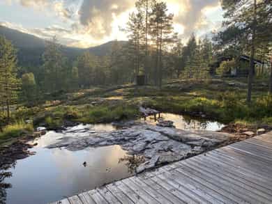 Gravd ut eit lite vannspeil på sida av hytta.