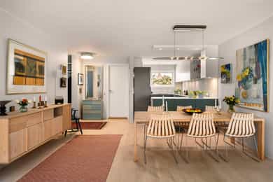 Velkommen til Hasselhaugveien 5, presentert av Nordvik v/ Ole Kristian Isdahl: En lekker og gjennomgående 3-roms leilighet betydelig oppgradert i tidsrommet 2020-2022. Boligen inneholder 2 soverom, entré, bad, åpen kjøkkenløsning fra KVIK, installert i 2020 og stue med utgang til en sydvendt terrasse. Leiligheten ligger i en meget høy 1. etasje. En attraktiv og rolig, men sentralt beliggende leilighet i første rekke. Høydepunkter: - Vesentlig oppgradert med nytt baderom, KVIK-kjøkken samt endret planløsning m.m i tidsperioden 2020-2022 - Delikate overflater - Klebersteinsovn - Nytt parkettgulv med varmekabler i alle rom - Garasjeplass med opplegg for lader - Disponerer 3 stk boder - Ligger i frontrekke - Flytt rett inn!
