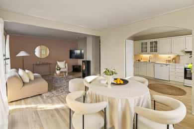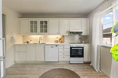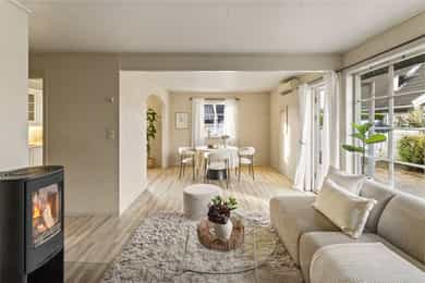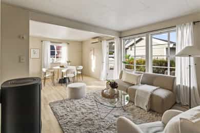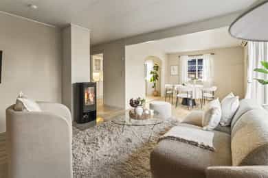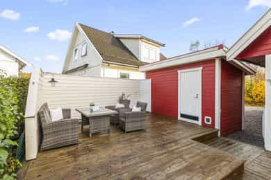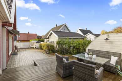 Eiendommen tilfredsstiller deg som bl.a. stiller høye krav til en rolig og barnevennlig beliggenhet, nærhet til skog og natur, samt en solrik og skjermet uteplass. Boligen er godt tilpasset ulike livsfaser og aldersgrupper med en smart planløsning som byr på både 4 soverom, 2 baderom (et på hvert plan) i tillegg til alle bo-funksjoner på ett-plan i husets første etasje. Dette gjør hjemmet til et godt valg for både barnefamilier og par som ønsker en fleksibel og funksjonell bolig. Det er godt med parkeringsmuligheter på gårdsplass. Huset er innholdsrikt og velholdt med behov for noe modernisering. Det er store vindusflater som slipper inn rikelig med dagslys i stue og kjøkken. Fra stuen, via en terrassedør, kommer du rett ut i til den romslige og svært solrike terrassen.