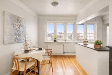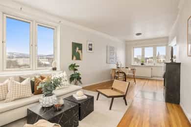 Nordvik ved Marcus Egeland har gleden av å presentere Kirkeveien 90E. En lys og attraktiv 2-roms hjørneleilighet med sentral og attraktiv beliggenhet på populære Majorstuen. Leiligheten har en effektiv planløsning og består av innbydende entré, hyggelig stue med delvis åpen kjøkkenløsning, soverom og flislagt baderom. Her bor du med kort vei til "alt" Oslo har å by på! - Varmtvann, fyring og TV/internett er inkludert - Vestvendt balkong på ca. 4 kvm - Heis i bygget - Store vindusflater som gir rikelig med luft og lys - Stor og hyggelig bakgård med plen og sittegrupper - Veldrevet sameie - Opplegg for vaskemaskin på baderom - Godt med oppbevaringsplass i to kjellerboder på ca. 4 kvm totalt - Umiddelbar nærhet til kollektivtransport, dagligvarehandel og servicetilbud