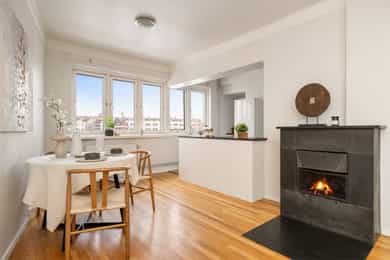 UTVENDIG Bygningen har malte trevinduer med 3-lags glass. Bygningen har malt balkongdør i tre og brann- og lydklassifisert entrédør. Balkong med betong gulv, vegger og rekkverk. INNVENDIG Innvendig er det gulv av tre og laminat. Veggene har betong. Innvendige tak har malte flater. Etasjeskiller er av betongdekke. Boligen har peis. Kjellergulvet er av betong. Veggene har betong/mur. Hulltaking er ikke foretatt da det ikke er fysisk mulig pga tilliggende konstruksjoner. Dette er en del av felles arealer så det er således ikke vurdert Tg. Boligen har betongtrapp. Bygningsdelen er del av byggets fellesareal og TG er således ikke vurdert. Innvendig har boligen malte glatte dører. Det er montert garderobeskap på soverom. TEKNISKE INSTALLASJONER Innvendige vannledninger er av kobber, den nyere delen av røropplegget er med plastrør. Det er avløpsrør av støpejern, innvendig i leiligheten er det plastrør. Det blir opplyst at det ble utført fornying av avløpsrør i 2023. Boligen har naturlig ventilasjon. Det er installert fjernvarme, oppvarming med radiatorer. Det er sentralanlegg for varmt vann. Porttelefon. Automatsikringer og kursoversikt Ukjent når el-anlegget er totalrehabilitert. Deler av anlegget er oppgradert og ombygget, ukjent når dette ble gjort. I eldre boliger vil det normalt anbefales en el-kontroll for å avdekke eventuelle feil, mangler eller svakheter av anlegget.