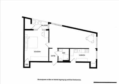 BRA-i: 53 kvm. Gang, stue/kjøkken, soverom, bad.