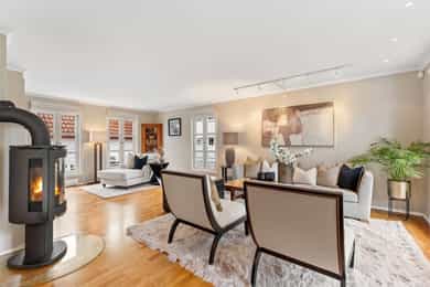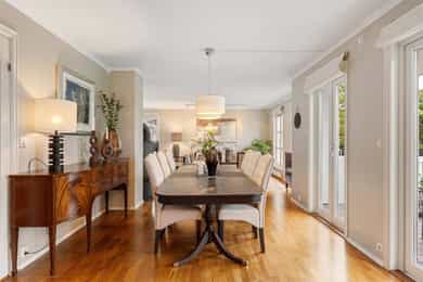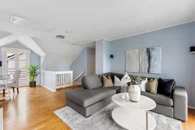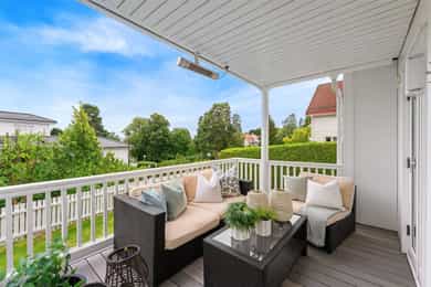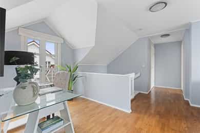 Velkommen til Strømstangen og det nabolaget kaller 'Sørlandsidyll på Snarøya'. Her bor man solrikt og fredelig med sjøen på begge sider av Strømstangen. Utsikt til sjø på to sider. 15 frittliggende eneboligeiendommer med privat brygge, strandlinje, bøyer til båt og fantastiske solnedganger. Dessuten meget pene og velholdte fellesarealer. Boligen ligger usjenert i hjørnet på øvre tun, har fasade mot Oslofjorden i sør og har en av de flotte, romslige hagene. Privat trappeadkomst fra Strømstangveien. Velholdt bolig, gode planløsninger og store soverom. Boligen går over 3 plan, bygget med egen kjellerinngang og har ca. 80 m² på hvert plan. Garasje, biloppstillingsplass og gårdsplass. Nydelig hage. Pt. er kun 2 av 8 bøyer for båt i bruk. Sentral beliggenhet med 4-5 min. til buss.