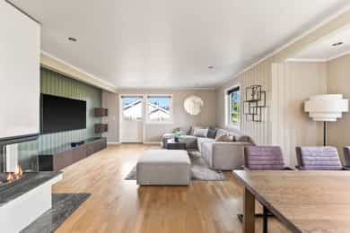 Enebolig fra 2006 med 4 sov, 2 bad & 2 stuer. Terrasse - Balkong - Hage - Dobbel garasje - Nærhet til skole & friluft