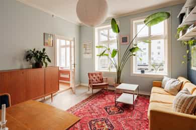 Klassisk og lys 3-roms selveier med separat kjøkken. Peis, store vinduer og generøs takhøyde. Sentral beliggenhet