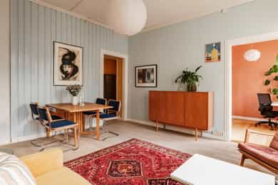 KINGOS GATE 3 Presentert av Vilde Nadden En klassisk og lys 3-roms leilighet i 3. etasje med god planløsning, sjarmerende detaljer og attraktiv beliggenhet på Alexander Kiellands plass. Leiligheten har gode kvaliteter som peis, to romslige soverom, store vindusflater og klassiske detaljer. Videre er det et flislagt bad med opplegg for vaskesøyle, en hyggelig stue, mye bodplass og et romslig kjøkken med plass for spisebord. Leiligheten disponerer en bod på ca. 7 kvm i kjeller og en på ca. 3 kvm på loft. Området er ansett som meget populært med kort avstand til alle bymessige fasiliteter og nydelige turområder langs Akerselva. Leiligheten bærer noe preg av moderniseringsbehov, men har stort potensiale. Se salgsoppgave for mer info.