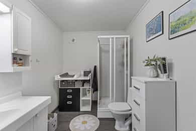 Innholdsrik familiebolig med praktiske løsninger og arealeffektiv planløsning. Hoveddelen strekker seg over to etasjer hvor loftsetasjen inneholder 3 soverom og pent helfliset bad for etasjen. I hjemmets 1.etasje finner du stue og kjøkken i åpen løsning, lekkert helfliset bad og separat vaskerom, samt ett soverom. Fra stuen har du tilkomst til veranda og flotte uteområder med utestue og nydelig utsikt. Hele sokkeletasjen rommer en utleiedel som inneholder stue, kjøkken, bad, to soverom og to boder. Utleiedelen har egen strømmåler og egen inngang. Fra stuen er det utgang til uteområde og platting.