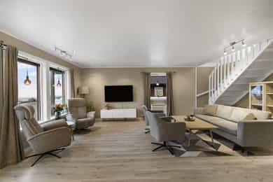 Velkommen til Granlia 16, presentert av Nordvik Finnsnes! Denne innholdsrike familieboligen har en romslig hoveddel og utleiedel i kjelleretasje med egen inngang. Hoveddelen byr blant annet på 3 soverom, loftstue (også innredet som soverom), bad i hver etasje, vaskerom og en sosial planløsning med åpen løsning mellom kjøkken og stue. Fra stuen er det utgang til en flott veranda, hvor du også har en koselig vinterhage. Utleiedelen i kjeller byr på stue med åpen kjøkkenløsning, to soverom, bad og to innvendige boder. Flott utsikt over sjø og fjell med fin solgang fra romslig veranda. Boligen er pent opparbeidet med plen og beplantning og plass til parkering for både hoveddel i en romslig dobbelgarasje og 2 biloppstillingsplasser for utleiedel. Her vil du og dine trives! Se videovisning!