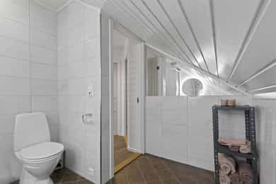 Megler opplyser om følgende forhold: - Det mangler direkte rømningsvei til sikkert sted fra soverommene på loftet. Det mangler stigetrinn over taket på de rommene som har rømningsvei mot garasjen. Disse vinduene er i tillegg for små for å være godkjent som rømningsvei. I tilstandsrapporten fremkommer det at brannstige mangler og rommet kan derfor ikke ansees som et godkjent soverom. Takstmannen har vurdert de øvrige forhold ved loftstuen for å være innenfor kravene som forelå på innredningstidspunktet med unntak av manglende brannstige. Kjøper og selger er forpliktet til å undertegne standard kjøpekontrakt utarbeidet av Nordvik i forbindelse med eiendomstransaksjonen. Kjøpekontrakt kan besiktiges hos eiendomsmegler før bud inngis. Kontakt eiendomsmegler for spørsmål. Utdrag fra tilstandsrapport: Tilstanden vurderes med ulike tilstandsgrader: TILSTANDSGRAD 0, TG0: INGEN AVVIK TILSTANDSGRAD 1, TG1: MINDRE AVVIK TILSTANDSGRAD 2, TG2: AVVIK SOM KAN KREVE TILTAK TILSTANDSGRAD 3, TG3: STORE ELLER ALVORLIGE AVVIK TILSTANDSGRAD IU, TGIU: IKKE UNDERSØKT/IKKE TILGJENGELIG Følgende punkter har fått TG 3 i tilstandsapporten: Taktekking vinterhage Vurdering av avvik: Ved inspeksjon av taktekkingen er det påvist utettheter i skjøtene. Konsekvens/tiltak: Utettheter i skjøtene bør utbedres for å hindre vanninntrengning, som kan føre til fuktskader i takkonstruksjonen og omkringliggende bygningsdeler. Kostnadsestimat: 10 000 - 50 000 Nedløp og beslag Vurdering av avvik: Det mangler snøfangere på hele eller deler av taket, noe som var krav på byggemeldingstidspunktet. Ved takvinkel på 27 grader eller mer og ru taktekking er det krav om snøfangere. Det er ikke montert snøfangere på taket til garasjen. Konsekvens/tiltak: Det må monteres snøfangere for å oppfylle byggeårets krav. Det bør monteres snøfangere på taket til garasjen for å oppfylle kravene som gjaldt ved byggemeldingstidspunktet. Manglende snøfangere medfører økt risiko for snø- og isras, noe som kan føre til personskade eller skade på eiendom. Kostnadsestimat: 10 000 - 50 000 Dør bod Vurdering av avvik: Det er påvist dør(er) med fukt/råteskader. Konsekvens/tiltak: Døren(e) står foran utskiftning. Døren bør utbedres eller skiftes ut for å hindre videre fukt- og råteskader, som kan føre til redusert funksjon og økt risiko for skader på omkringliggende konstruksjoner. Kostnadsestimat: 10 000 - 50 000 Pipe og ildsted Vurdering av avvik: Det er påvist brennbart materiale nærmere enn 300 mm fra sotluke/feieluke. Ildfast plate mangler på gulvet under sotluke/feieluke på pipe. Det er ikke bunn i elementet der sotluken er montert. Dette medfører at pipen endrer karakteristikk fra to-sjiktspipe til en-sjiktspipe. Som følge av denne endringen er kravet til avstand mellom pipeløpet og brennbart materiale ikke ivaretatt. Konsekvens/tiltak: Det må undersøkes om det kan monteres sotlukestein i denne pipen for å ivareta avstanden til brennbart materiale fra sotluken. Dersom dette ikke er mulig, må det monteres ubrennbare plater på gulvet og veggen ved sotluken. Det må støpes ny bunn i pipen i henhold til leverandørens monteringsanvisning, slik at pipen får riktig oppbygging. Dersom tiltak ikke utføres, øker dette risikoen for brannspredning ved eventuell pipebrann. Kostnadsestimat: 10 000 - 50 000 Vaskerom hoveddel Sluk, membran og tettesjikt Vurdering av avvik: Det er påvist mangelfull/feil utførelse rundt rørgjennomføringer e.l. som gir fare for fukt i konstruksjonen i våtsone. Sluk har begrenset mulighet for inspeksjon og rengjøring. Feilmontering av baderomsplater medfører at det ikke er mulig å oppnå en tett overgang mellom tettesjiktet på gulvet og veggene. Det er heller ikke fuget rundt avløpsrøret til servanten, noe som øker risikoen for fuktinntrengning i konstruksjonen. Konsekvens/tiltak: Løsningen/utførelsen rundt rørgjennomføringer gir fare for fukt inn i konstruksjoner. Det må foretas lokale tiltak for å utbedre utettheter på våtrommet. Konsekvensen er at det kan oppstå fuktskader i konstruksjonen bak overflatematerialet. Vann kan trenge inn gjennom utette rørgjennomføringer og forårsake fuktskader ved fukttilførsel gjennom enten bruksvann eller lekkasjevann. Når sluket har begrenset tilgang, er det vanskelig å rengjøre sluket og å inspisere den for å oppdage skader i membranen/fuger rundt sluket, som er avgjørende for å forhindre lekkasjer. Det bør foretas utbedring av overgangen mellom gulv og vegg for å sikre tett utførelse av tettesjiktet, samt fuge rundt avløpsrøret til servanten. Manglende tetthet og feilmontering medfører økt risiko for fuktinntrengning i konstruksjonen, noe som kan føre til fuktskader og redusert levetid på våtrommet. Kostnadsestimat: 10 000 - 50 000 Bad loftetasje ventilasjon Vurdering av avvik: Våtrommet mangler tilluftsventilering, f.eks. spalte/ventil ved dør. Rommet har kun naturlig avtrekk via ventil i vegg eller tak. Det ser ut til at det har vært ventilasjon via boligene sentrale avtrekkssystem, dette systemet er frakoblet og røret er avsluttet inne på kaldloftet. Konsekvens/tiltak: Det bør etableres tilfredsstillende tilluft til våtrom f.eks. luftespalte ved dør e.l. Dersom avviket ikke utbedres vil det være fare for dårlig luftskifting og resultere i høy luftfuktighet og utvikling av skader. Det bør etableres tilfredsstillende tilluft til våtrom, for eksempel ved å montere en luftespalte eller ventil ved døren. Manglende ventilasjon kan føre til dårlig luftkvalitet, økt fuktbelastning og risiko for mugg- og råteskader. Det anbefales også å vurdere gjenoppretting eller oppgradering av avtrekkssystemet, da frakobling av sentralt avtrekk kan medføre ytterligere risiko for fuktskader, redusert inneklima og høyt fuktnivå på kaldloftet. Kostnadsestimat: 10 000 - 50 000 Vannledninger Vurdering av avvik: Mer enn halvparten av forventet brukstid er passert på innvendige van