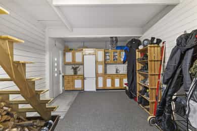 BRA-e: 68 kvm. Integrert dobbelgarasje og utebod (tidligere carport) med utvendig tilkomst.