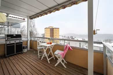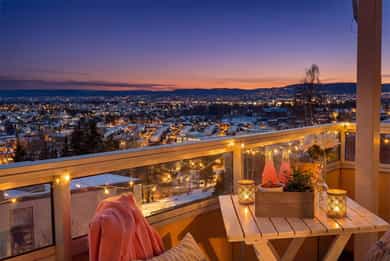 Lys & attraktiv 3-roms toppleilighet med solrik, vestvendt balkong! Fantastisk utsikt - Peisovn - Sentral beliggenhet!