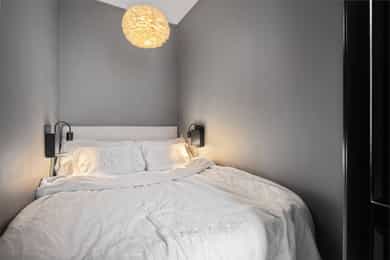 Rålekker og moderne 2-r med balkong - Rosett, stukkatur og peis - Takhøyde på over 3 M - Soverom og balkong mot bakgård
