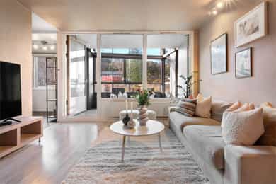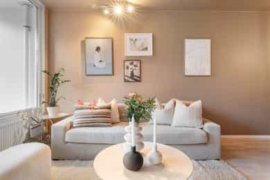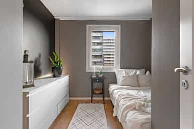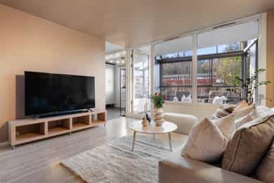 Innbydende 4-roms m/8m² solrik, innglasset balkong! Sentralvarme/varmtvann inkl. Parkeringsmulighet. 1 min til buss