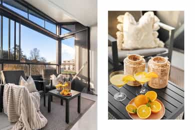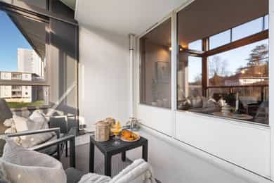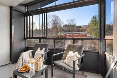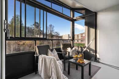 • Innglasset balkong på 8m² med gode solforhold midtsommers