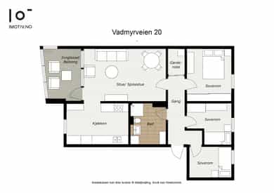 • 8 min gange til Vestkanten Entré/gang, bad, 3 soverom, stue, kjøkken og garderobe