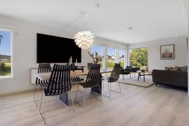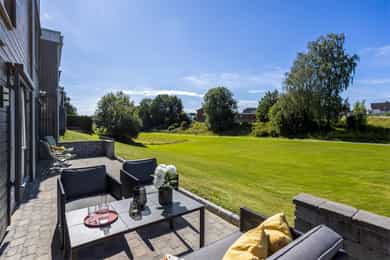 Innbydende funkisbolig på praktfull utsiktstomt. 3(4) sov og 2 bad. Dobbel garasje. En unik mulighet i vakre Lundedalen!