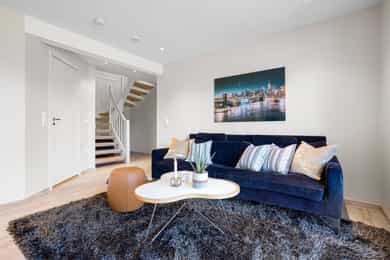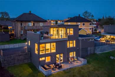 Velkommen til Byfogd Paus gate 27b! Eiendommen har en rolig og tilbaketrukket beliggenhet i et trivelig, sentralt boligfelt, i blindvei. Dette området består av både eldre og nyere boligbebyggelse og grenser til naturskjønne omgivelser mot vest. Rett på utsiden av døren har man vakre Lundedalen med videre gangstier ned til populære Bakkestranda. Denne nydelige funkisboligen fremstår som særdeles innbydende og gjennomført, med moderne arkitektur og praktiske romløsninger over tre flotte etasjer. Det er lagt stor vekt på funksjonalitet og minimalisme, samtidig får man følelsen av lune og hyggelige rom malt i vakre, tidsriktige farger. Boligen holder en gjennomgående god standard på innredninger og materialvalg. Boligen er oppført etter TEK 17. En sjelden mulighet som må oppleves!