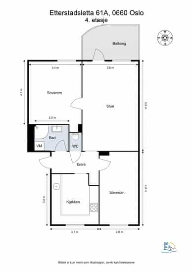 Stue: Romslig og innbydende stue malt i moderne fargetoner. Her er det god plass til både sofaseksjon med tilhørende møblement og spisebord for hyggelige sammenkomster. Store vinduer og utgang til balkong sørger for rikelig med naturlig lys og en koselig utsikt. Stuen er i tillegg utstyrt med downlightskasser i himlingen som gir god belysning. Balkong: Utgang til solrik, vestvendt balkong på ca. 8 kvm som fungerer utmerket som en forlengelse av leiligheten. Her er det plass til utemøbler som sittegruppe og grill. Balkongen har markise, belysning og stikkontakt, noe som gjør den svært praktisk og brukervennlig. Kjøkken: Separat kjøkken med lys og pen innredning, profilerte fronter og laminat benkeplate. Kjøkkenet tilbyr rikelig med skap- og benkeplass, integrert induksjonstopp og stekeovn, samt kjøkkenventilator over kokeplass. Det er også opplegg for oppvaskemaskin. Et stort vindu gir hyggelig utsikt over området. Bad: Pent og innbydende baderom med servant nedfelt i innredning, speilskap og vegghengt skap for gode oppbevaringsmuligheter. Badet har dusjkabinett og opplegg for vaskemaskin. Flislagt gulv med gulvvarme og naturlig ventilasjon. Elektriker melder brudd på gulvvarmen, og bør utbedres Toalettrom: Praktisk, flislagt toalettrom med gulvstående toalett og gulvvarme. Naturlig ventilasjon. Soverom: Leiligheten har to svært romslige soverom. Begge soverommene har plass til dobbeltseng, nattbord, kontorpult og garderobeskap. Entré: Lys og innbydende entré med plass til oppheng av ytterklær og sko. Dørcalling er praktisk plassert ved inngangsdøren. Tilstandsrapport for boligen er vedlagt salgsoppgaven. Se denne for nærmere informasjon om tilstandsgrad.