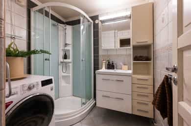 BOLIGBYGG MED FLERE BOENHETER Utvendig: Vinduer: Vinduer med 2-lags isolerglass, prod 2012. Dører: Lyd- og brannklassifisert entrédør. Malt balkongdør med 2-lags glass, prod 2012. Balkonger, terrasser og rom under balkonger: Vestvendt balkong på ca. 8 m². Gulv med terrassebord. Rekkverk i stålkonstruksjoner med plater. Rekkverkshøyden ble målt til: 0,92 m. Innvendig: Etasjeskille/gulv mot grunn: Etasjeskillere av betong. TG2 Balkonger, terrasser og rom under balkonger Rekkverket er for lavt i forhold til dagens krav til rekkverkshøyder. Konsekvens/tiltak: Det er ikke krav om utbedring av rekkverkshøyde opp til dagens forskriftskrav. 4. etasje - bad - Overflater vegger og himling Det er ikke direkte vannpåkjenning på veggene, noe som er bra. Tilstandsgraden settes av hensyn til alder. Konsekvens/tiltak: Videre bruk av lukket dusjkabinett anbefales. Det bør påregnes oppussing på sikt. 4. etasje - bad - Overflater Gulv Det er påvist at høydeforskjell fra topp slukrist til gulv/synlig topp membran ved dørterskel er mindre enn 25 mm. Det ble målt 17 mm fall fra dørterskel til sluk. Tilstandsgraden settes av hensyn til alder og nevnte avvik. Konsekvens/tiltak: Til tross for avviket i fall/høydeforskjell til sluk, vil gulvet fortsatt kunne lede vann mot sluket, men med redusert effektivitet. Dette kan potensielt øke risikoen for vannansamling i enkelte områder av badet. Det er ingen direkte vannpåkjenning på gulvet, noe som er bra. Det bør foretas utbedring av fallforhold, det vil være naturlig å gjøre ved oppussing av bad. 4. etasje - bad - Sluk, membran og tettesjikt Mer enn halvparten av forventet brukstid er passert på membranløsningen. Sluk under dusjkabinett er ikke besiktiget. Vurdering basert på alder. Tilstandsgrad 2 gis med bakgrunn i at mer enn halvparten av forventet brukstid for membran/tettesjikt er passert. Løs jordingskabel i sluk. Konsekvens/tiltak: Overvåk tilstanden jevnlig. For å få tilstandsgrad 0 eller 1 må tettesjiktet skiftes ut, men tidspunktet for når dette er nødvendig er vanskelig å si noe om. Det er viktig å merke seg at levetiden til en membran varierer basert på kvalitet, installasjon og bruk. Eldre membraner kan bli sprø og sprekke opp, noe som fører til at de mister sin vanntettende funksjon. Dette kan resultere i vannlekkasjer gjennom vegger og gulv og fuktskader. Jordingskabel må festes. Det bør påregnes oppussing på sikt. 4. etasje - bad - Ventilasjon Rommet har kun naturlig ventilasjon. NS3600 krever mekanisk/elektrisk styrt vifte for å kunne gi tg 0/1. Naturlig oppdriftsventilasjon er vanlig i blokkleiligheter, og det er normalt ikke tillat til felles kanaler for bygget. Konsekvens/tiltak: Det er vanskelig å etablere en annen løsning på bakgrunn av at det muligens ikke er godkjent av sameiet/borettslaget å etablere mekanisk/forsert avtrekk til felles luftekanaler i bygget. 4. etasje - kjøkken - Avtrekk Det er i dag ingen avtrekk, da ventilatoren ikke kan brukes slik det er i dag. Konsekvens/tiltak: Det bør installeres kullfilterventilator. 4. etasje - toalettrom - Overflater og konstruksjon Toalettrom har kun naturlig avtrekk fra rommet, NS 3600 krever mekanisk avtrekk for å kunne gi TG 0/1. Hull i vegfliser etter tidligere innredning e.l. Konsekvens/tiltak: For å møte kravet i NS3600 bør det monteres mekanisk avtrekk. Det anses ikke som nødvendig. Vannledninger Mer enn halvparten av forventet brukstid er passert på innvendige vannledninger. Konsekvens/tiltak: Det er ikke behov for utbedringstiltak siden anlegget fungerer i dag, men ut ifra alder kan skader plutselig oppstå på eldre anlegg. I forbindelse med oppgradering av våtrom vil det være naturlig med utskiftning av rør. Avløpsrør Mer enn halvparten av forventet brukstid er passert på innvendige avløpsledninger. Konsekvens/tiltak: Eldre avløpsrør har blant annet større sannsynlighet for lekkasjer, noe som kan føre til omfattende og kostbare vannskader i boliger. I forbindelse med oppgradering av våtrom vil det være naturlig med utskiftning av rør. Varmtvannstank Det er ikke påvist tilfredsstillende avrenning eller annen kompenserende løsning fra varmtvannstank. Det er ikke påvist tilfredsstillende el-tilkobling av varmtvannstank iht. gjeldende forskrift. Konsekvens/tiltak: Det bør etableres tilfredsstillende avrenning eller lekkasjesikring ved varmtvannstank. Etablering av tilfredstillende EL-tilkobling gjøres ikke gjeldende før man skal skifte varmtvannsberederen. Elektrisk anlegg Leiligheten har hatt flere eiere, ukjent hva som er gjort av tidligere eier da det ikke foreligger dokumentasjon/samsvarserklæringer på hele det elektriske anlegget, det kan derfor ikke gis bedre tilstandsgrad enn TG2 Det anbefales derfor alltid utvidet kontroll da dette ligger utenfor takstmannens kompetanseområde. TGIU Radon Det er ikke gjort undersøkelser av radonforekomst i forbindelse med rapporten. Dette gjøres med egnet utstyr i de kaldeste månedene i året. 4. etasje - bad - Tilliggende konstruksjoner våtrom Hulltaking er ikke foretatt da det ikke er fysisk mulig pga tilliggende konstruksjoner.