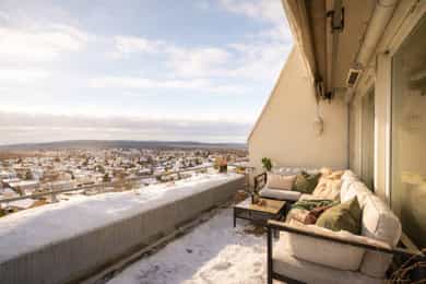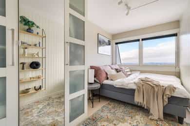 Gjennomgående og lys 4-roms | Mulighet for 4 sov | Solrik terrasse på 11m² med fantastisk utsikt | P-plass m/elbillading