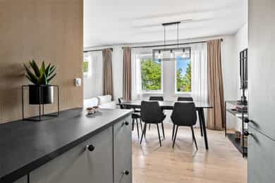 Det opplyses om at ingen kan eie mer enn to boligseksjoner i sameiet, jf. eierseksjonsloven § 23. Seksjoner som eies av nærstående eller via firma teller med. Etter lov om eierseksjoner § 31, er sameierne overfor sameiets kreditorer ansvarlige etter sin sameiebrøk. Ved manglende betaling av fellesutgifter har sameiet legalpanterett i den enkelte eierseksjon på inntil 2 ganger folketrygdens grunnbeløp. Kjøper og selger er forpliktet til å undertegne standard kjøpekontrakt utarbeidet av Nordvik i forbindelse med eiendomstransaksjonen. Kjøpekontrakt kan besiktiges hos eiendomsmegler før bud inngis. Kontakt eiendomsmegler for spørsmål. Bilder av boligen er over 1 år gamle, og bilder og opplevelsen av boligen kan være ulikt fra hverandre. Se tilstandsrapport for utfyllende informasjon om boligens tekniske standard. Selger leverer eiendommen i ryddig og rengjort stand.