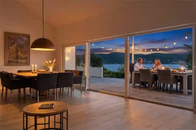 Spektakulær enebolig med eksepsjonell panoramautsikt over fjorden - basseng – tre separate innganger – solrik tomt