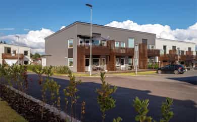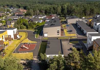 Til bebyggelsen hører et carportanlegg med boder, som gir både beskyttet parkering og god lagringsplass. Området byr også på lekeplass og trygge utearealer som inviterer til sosialt samvær og lek. Helhetsinntrykket er moderne, velholdt og funksjonelt – et trivelig fellesområde som bidrar til et godt naboskap.