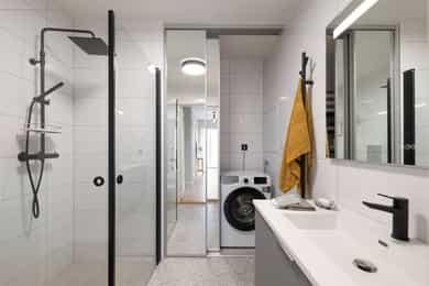 Regimentveien 60 er en stilren og innbydende 3-roms ende-leilighet i andre etasje av en nyere 6-mannsbolig, oppført i 2024. Her får du et hjem som kombinerer moderne komfort med en rolig og naturnær beliggenhet. Når du trer inn i leiligheten, blir du møtt av en luftig stue- og kjøkkenløsning der takhøyden strekker seg fra 3,3 til hele 4 meter på det høyeste. Store vindusflater slipper inn rikelig med dagslys og gir en herlig romfølelse. Det er montert zipscreen på to av vinduene i stuen samt dobbel plisségardin på stuevindu vendt mot vest. Det hjelper godt både på solskjerming og hindre varme inn i leiligheten. Den åpne planløsningen har plass til både spisebord og sofagruppe, perfekt for hyggelige måltider og sosiale sammenkomster. Fra stuen har du direkte utgang til en solrik, sørvestvendt veranda - her kan du nyte solen helt til den går ned sommerstid, rundt kl. 21.30. Kjøkkenet er et moderne HTH-kjøkken fra 2024 i en elegant gråtone som gir et stilrent og tidløst preg. Rommet har slette, malte vegger, hvite fliser over benk og parkettgulv som skaper en varm kontrast til de stramme kjøkkenfrontene. Benkeplaten i laminat har nedfelt vask og platetopp, med integrert kombiskap (kjøl/frys), oppvaskmaskin og stekeovn for en helhetlig og praktisk løsning. Armatur til kjøkkenet har en utrekkbar slange og salatvasker, svært praktisk når grønnsaker skal tilberedes. Mekanisk ventilator med avtrekk ut sørger for godt inneklima under matlaging. Over- og underskap gir rikelig med lagringsplass, og den åpne L-formasjonen legger til rette for en sosial og funksjonell arbeidsflyt - perfekt for både hverdag og selskap. Leiligheten har to soverom vendt mot den innerste delen av boligfeltet og har dermed lite biltrafikk forbi. Dette gir en ekstra ro og privatliv. Hovedsoverommet er romslig og fått plass til en skyvedørsgarderobe som er innredet med trådkurver. Den veggmonterte lampe ved sengen har to USB-porter noe som gjør det enkelt å lade både mobil og nettbrett. Soverom nr. 2 har en fleksibel størrelse som passer perfekt til gjesterom, barnerom eller hjemmekontor. Badet er lekkert flislagt og utstyrt med vegghengt toalett, dusjnisje med innfellbare glassdører og servant med underskap. Dusjen har dusjhode av typen rain-shower. Veggene er flislagt i et stilrent format, og himlingen er malt og slett for et rent uttrykk. Gulvet er flislagt med gulvvarme for ekstra komfort. Det er montert en praktisk varmestang til håndklær eller morgenkåpe like ovenfor dusjsonen. En praktisk nisje bak speilfrontede skyvedører skjuler vaskemaskin, tørketrommel og varmtvannsbereder på en elegant måte. Badet er gjennomført og et svært funksjonelt rom der alt er på plass for en komfortabel hverdag I tilknytning til gangen ligger en innvendig bod som kan innredes med hyllesystem for optimal lagringsplass. I gangen finner du et garderobeskap med både oppheng og trådkurver, noe som gjør det enkelt å holde inngangspartiet ryddig og gir god oversikt over yttertøyet. Leiligheten har gjennomgående svart profilering på alt av lysbrytere, dimmere og stikkontakter, noe som bidrar til et moderne, stilrent og helhetlig uttrykk som gir boligen det lille ekstra. Bilen parkeres trygt i egen carport med tilhørende sportsbod og elbillader. Selger har ikke tatt i bruk lader, eller knyttet meg til abonnement, så det må ny eier gjøre dersom det er ønskelig med el-billader. Sameiet fremstår som veldrevet og velholdt, slik at du kan flytte rett inn og nyte hverdagen uten bekymringer. Beliggenheten er ideell for deg som ønsker å bo stille og fredelig, men samtidig ha kort vei til alt du trenger. Med marka rett utenfor døren, er dette et drømmested for deg som liker turer, trening og friluftsliv. Begby treningspark ligger bare ti minutters gange langs turløypen, og byr på flotte muligheter for variert utetrening. Som ny bolig følger det med fire år igjen av utbyggergarantien. Dette er en sjelden mulighet til å sikre seg en moderne leilighet i et attraktivt og rolig område.