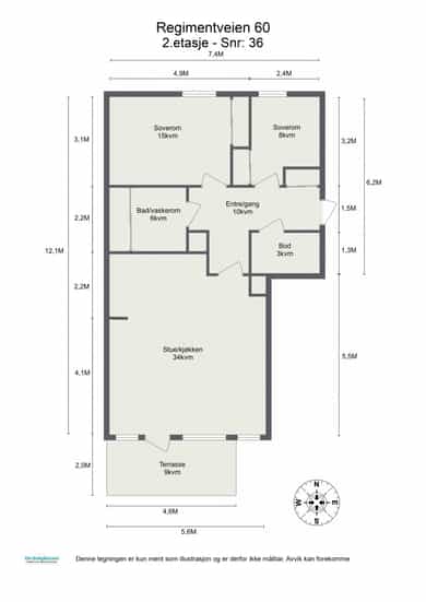 Generelle bestemmelser Alle innvendige og utvendige arealangivelser, samt beskrivelser av bygningen er hentet fra vedlagte tilstandsrapport/boligsalgsrapport. Salgsoppgaven er basert på de opplysningene selger har gitt til megler, den bygningssakkyndiges tilstandsrapport, samt opplysninger innhentet fra kommunen, Kartverket og andre tilgjengelige kilder. Det er viktig at kjøper setter seg grundig inn i alle salgsdokumentene, herunder salgsoppgave, tilstandsrapport og selgers egenerklæring. Kjøper anses kjent med forhold som er tydelig beskrevet i salgsdokumentene, og slike forhold kan ikke påberopes som mangler. Dette gjelder uavhengig av om kjøper har lest dokumentene. Det kan være avvik fra dagens rombruk/rombenevnelser sammenlignet med det som er byggemeldt/godkjent. Alle interessenter oppfordres til å undersøke eiendommen nøye, gjerne sammen med fagkyndig før bud inngis. Kjøper som velger å kjøpe usett kan ikke gjøre gjeldende som mangel noe han burde blitt kjent med ved undersøkelsen. Dersom det er behov for avklaringer, anbefaler vi at interessenter rådfører seg med eiendomsmegler eller egne rådgivere før det legges inn bud. En bolig som har blitt brukt i en viss tid, har vanligvis blitt utsatt for slitasje og skader kan ha oppstått. Slik bruksslitasje må kjøper regne med, og det kan avdekkes enkelte forhold etter overtakelse som nødvendiggjør utbedringer. Normal slitasje og skader som nødvendiggjør utbedring, er innenfor hva kjøper må forvente og vil ikke utgjøre en mangel. Kjøper og selgers rettigheter og plikter reguleres av avtalen mellom partene, samt informasjonen som har vært tilgjengelig for kjøperen i forbindelse med handelen. Avtalen utfylles av avhendingsloven, og det gjelder ulike avtalevilkår avhengig av om kjøper er forbrukerkjøper eller ikke. Dette er nærmere beskrevet nedenfor. På grunn av ulike avtalevilkår kan selger vurdere bud fra en som ikke er forbruker, ulikt fra en forbrukers bud. Dersom kjøper ikke er forbruker, er selger sitt mulige mangelsansvar begrenset fordi eiendommen selges "som den er". Selger kan ikke ta «som den er» forbehold ovenfor en forbrukerkjøper. Selv et lavere bud fra en som ikke er forbruker kan foretrekkes fordi begrensningen i mulig mangelsansvar kan ha egenverdi for selger. Selger står fritt til å forkaste eller akseptere ethvert bud, og er for eksempel ikke forpliktet til å akseptere høyeste bud. Budgiver skal i budskjema avgi egenerklæring om budgiver er forbruker eller næringsdrivende/ person som hovedsakelig handler som ledd i næringsvirksomhet. Budgivere får informasjon dersom andre bud er inngitt av en som ikke er forbruker. Forbrukerkjøp - definisjon Med forbrukerkjøp menes kjøp av eiendom når kjøperen er en fysisk person som ikke hovedsakelig handler som ledd i næringsvirksomhet. Forbruker – avtalevilkår Eiendommen har en mangel dersom den ikke er i samsvar med kravene som følger av avtalen, eller det foreligger brudd på bestemmelsene i avhendingsloven §§ 3-2 til 3-8. Hvis eiendommen ikke er i samsvar med det kjøperen må kunne forvente ut ifra alder, type og synlig tilstand, kan det være grunnlag for mangelskrav. Det samme gjelder hvis det er holdt tilbake eller gitt uriktige opplysninger om eiendommen. Dette gjelder likevel bare dersom man kan gå ut ifra at det virket inn på avtalen at opplysningen ikke ble gitt eller at feil uriktige opplysninger ikke blir rettet i tide på en tydelig måte. Boligen kan ha en mangel etter avhendingsloven § 3-3 dersom det er avvik mellom opplyst og faktisk innvendig areal, forutsatt at avviket er på 2% eller mer og minimum 1 kvm. Ved beregning av et eventuelt prisavslag eller erstatning må kjøper selv dekke tap/kostnader opptil et beløp på kr 10 000 (egenandel). Ikke-forbruker (næringsdrivende) – definisjon Hvis kjøper er en juridisk person, eller en fysisk person som hovedsakelig handler som ledd i næringsvirksomhet, vil kjøpet ikke anses som et forbrukerkjøp. Ikke-forbruker – avtalevilkår Eiendommen har en mangel dersom den ikke er i samsvar med kravene som følger av avtalen. Eiendommen selges «som den er», og selgers ansvar utover det konkret avtalte er da begrenset etter avhendingsloven § 3-9, første ledd andre setning. Avhendingsloven § 3-3 andre ledd fravikes, og hvorvidt boligens arealsvikt utgjør en mangel vurderes etter avhendingsloven § 3-8. Informasjon om kjøpers undersøkelsesplikt, herunder oppfordringen om å undersøke eiendommen nøye, gjelder også for kjøpere som ikke anses som forbrukere. Eiendommen overdras med innredning og utstyr som etter lov, forskrift eller annet offentlig vedtak skal være der, jf. avhendingsloven § 3-4. Varig innredning og utstyr, som enten er fastmontert eller særskilt tilpasset boligen medfølger, med mindre annet er avtalt mellom kjøper og selger, jf. avhendingsloven § 3-5. Tilbehørsliste utarbeidet av Norges Eiendomsmeglerforbund (NEF) er vedlagt salgsoppgaven, og gjelder dersom ikke annet er særskilt avtalt.