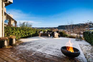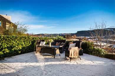 Lekker selveierleilighet fra 2018 med solrik uteplass på 50m². Heis & garasjeplass med elbil-lader. Kun TG 0/1!
