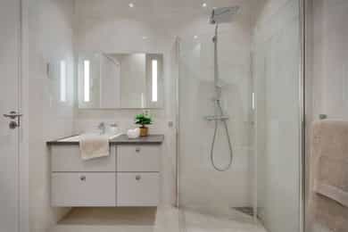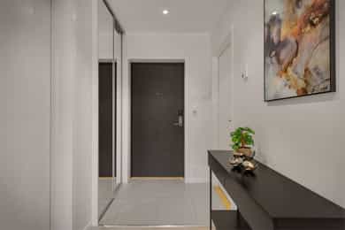 - Oppgradert skuffeseksjon stilmessig og endret farge, satt inn skyvedør for å skille bad fra vaskenisje