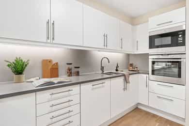 Lys og moderne 3-roms m/balkong på 16 m² - Heis - Garasjeplass - Sentral beliggenhet - Veldrevet sameie